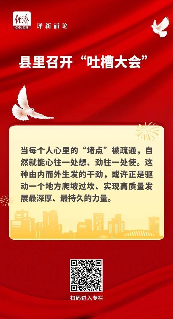 “吐槽”不是终点,而是为了更好的出发;不是为了制造对立,而是为了凝聚更大共识。当每个人心里的“堵点”被疏通,自然就能心往一处想、劲往一处使。这种由内而外生发的干劲,或许正是驱动一个地方爬坡过坎、实现高质量发展最深厚、最持久的力量。(宾语)