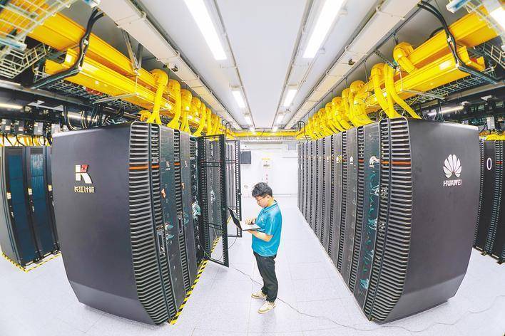 武汉人工智能计算中心,技术人员在监测新扩容算力服务器的运行状态。