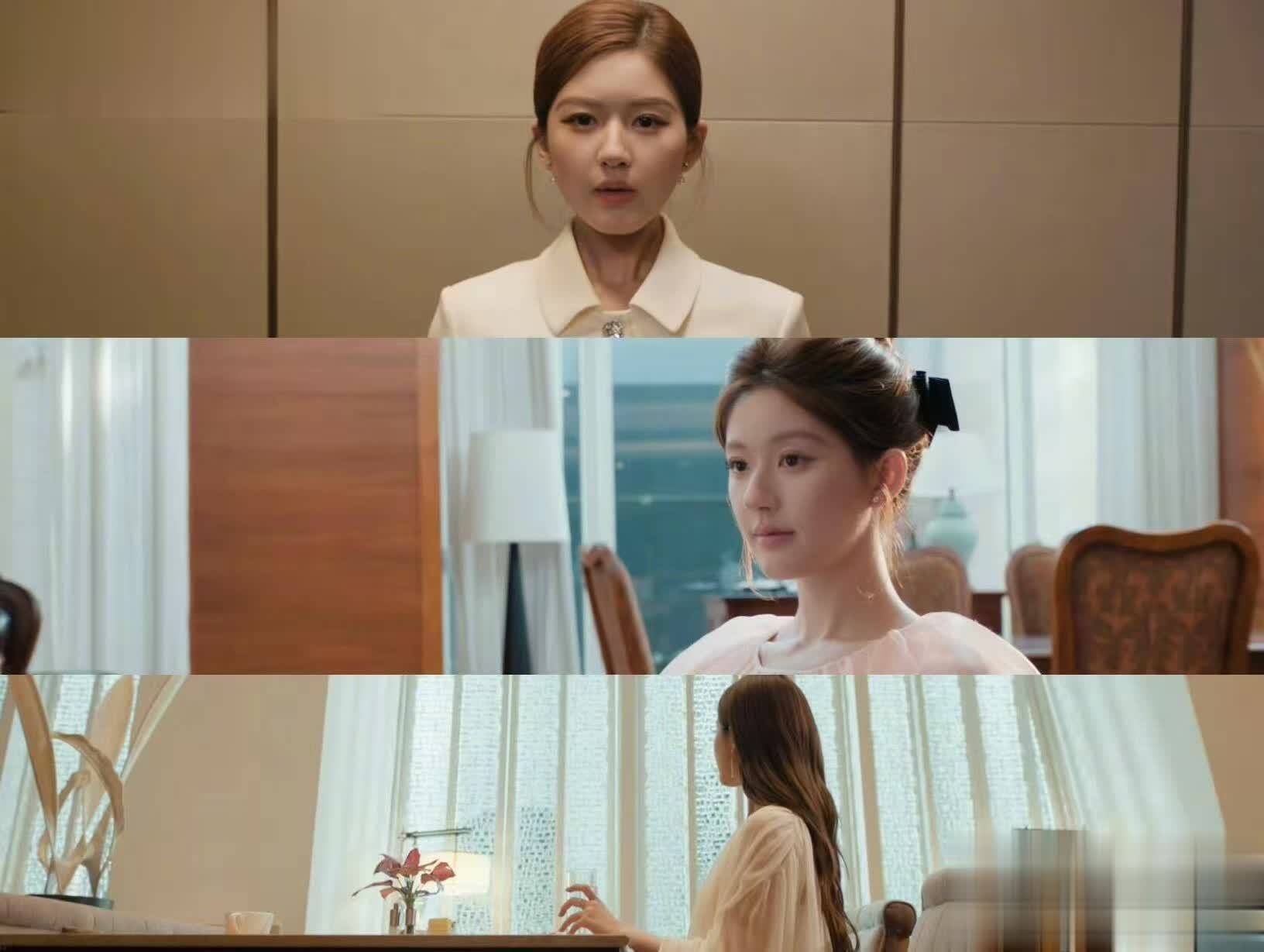 在造型美学上,赵露思为许妍打造了极具辨识度的“名媛进化论”。职场场景中,她身着剪裁利落的简约西装,搭配素圈戒指等冷感配饰,摒弃了多余的甜美元素,用干净的线条和沉稳的色调凸显角色的专业与疏离感。